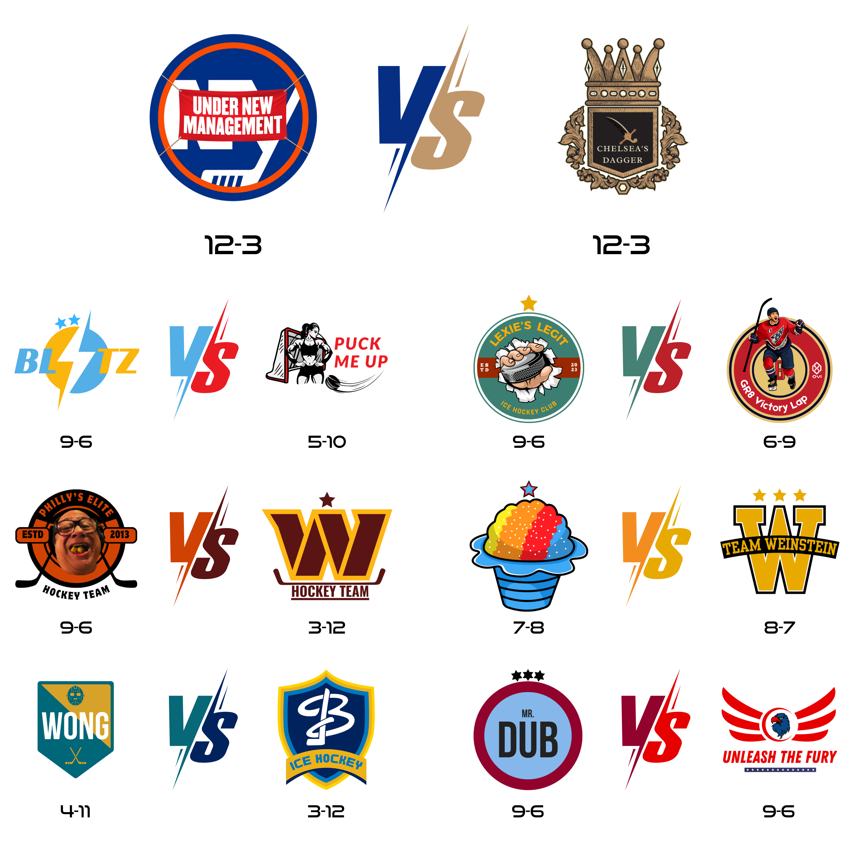 Mr. Dub is perhaps the hottest team in the league! His 4th consecutive victory over the Snow Cones is good enough for 5th place and 9-6 record. Things have not always been easy this season for one of our league’s GOATs, but he is heating up just in time for the final stretch. Stick taps.